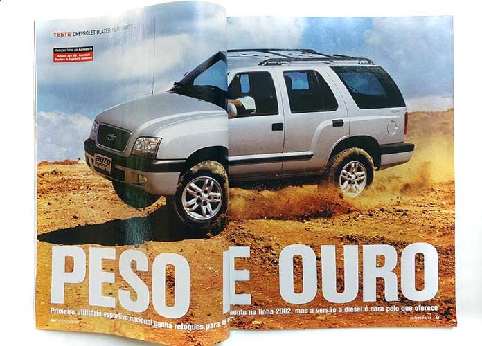 A Auto Livraria oferece revistas Auto Esporte e Quatro Rodas com testes e comparativo do Blazer em anos-modelo 1996 a 2006, com motores de quatro e seis cilindros a gasolina, além do turbodiesel, e tração 4×2 ou 4×4. Para comprar, envie mensagem abaixo ou pelo Whatsapp (12) 9-9779-2817 e indique os números dos itens desejados.