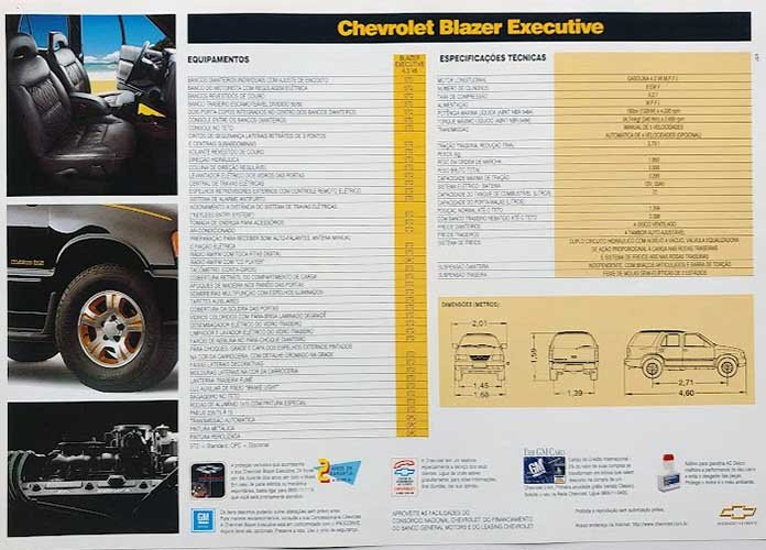 Enquanto o mercado nacional era invadido pelos utilitários esporte e pelas picapes médias importadas, na década de 1990, a General Motors foi ousada: passou a fabricar aqui a S10 e o Blazer, incluindo versões luxuosas como a Executive, um potente motor V6 de 180 cv e opção de tração nas quatro rodas.