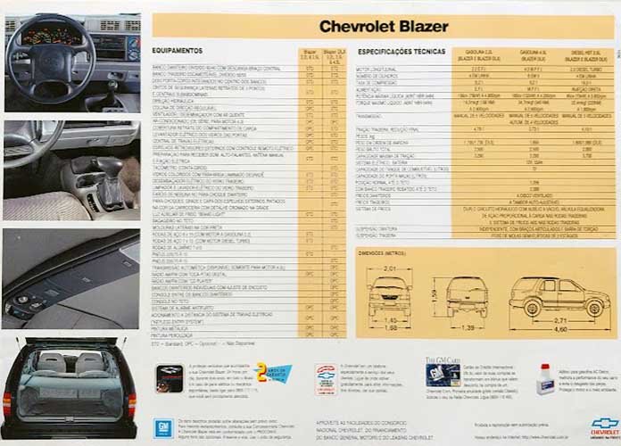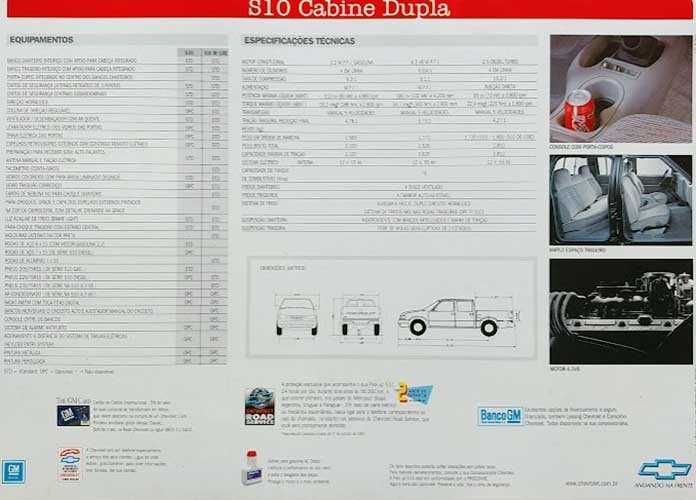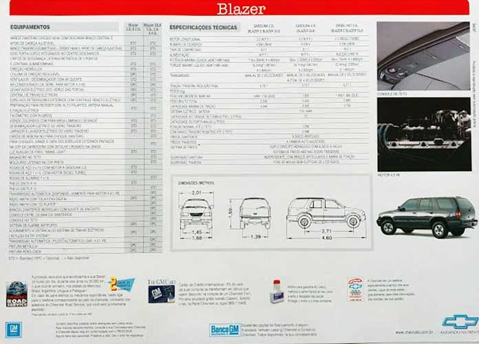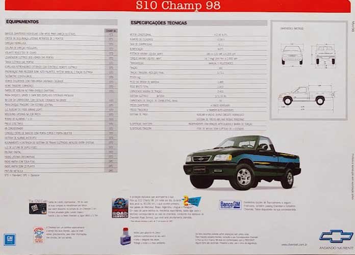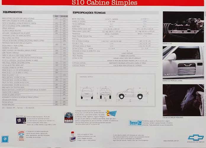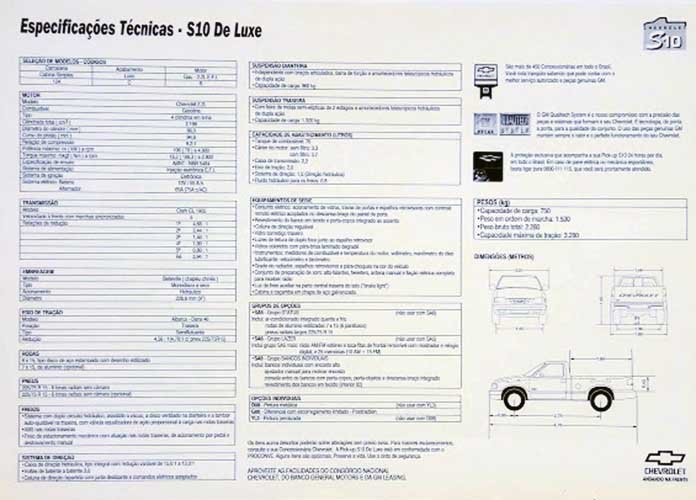 • Com dados técnicos (motores 2,2 e 4,3 a gasolina e 2,5 a diesel)
