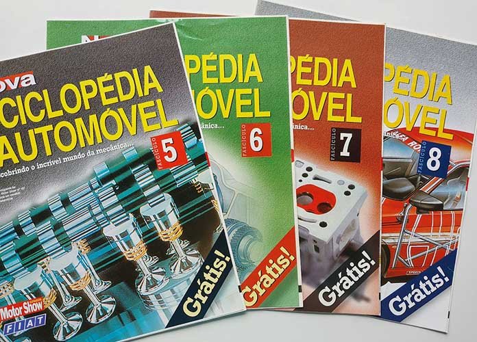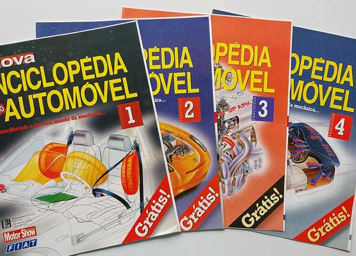 Como funciona o variador do comando de válvulas? O que significam termos como wastegate e sealed-beam? As respostas para essas e muitas outras dúvidas sobre o mundo do carro estão na Nova Enciclopédia do Automóvel, publicada pela Fiat e pela revista Motor Show por volta do ano 2000. A coleção traz o significado de centenas de itens de mecânica, sendo ricamente ilustrada com desenhos técnicos. Em geral são mostrados carros do grupo Fiat, em particular da Alfa Romeo.