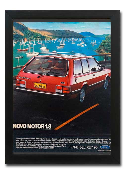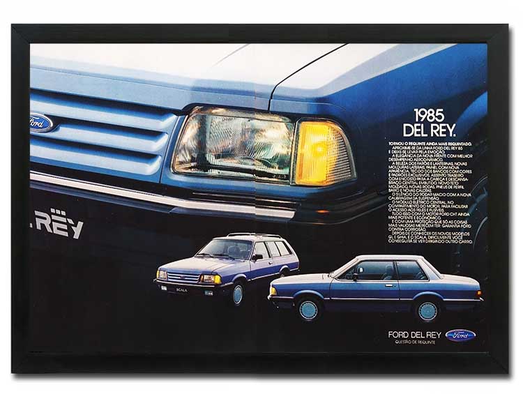O confortável Del Rey teve versões perua (Scala até 1986, Belina de 1987 em diante), ganhou motor de 1,8 litro da Volkswagen em 1989 e foi produzido até 1991. Modelos de várias fases dessa história estão nos quadros decorativos da Auto Livraria Best Cars, feitos com matérias e propagandas autênticas de época, sem reproduções.