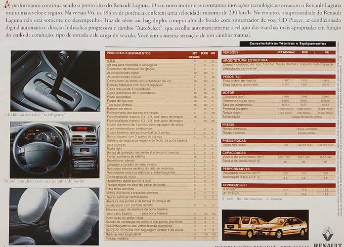• 2 catálogos (Laguna RXE 2,0 S 16V e Nevada RXE 2,0 S 16V)