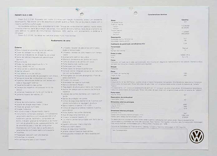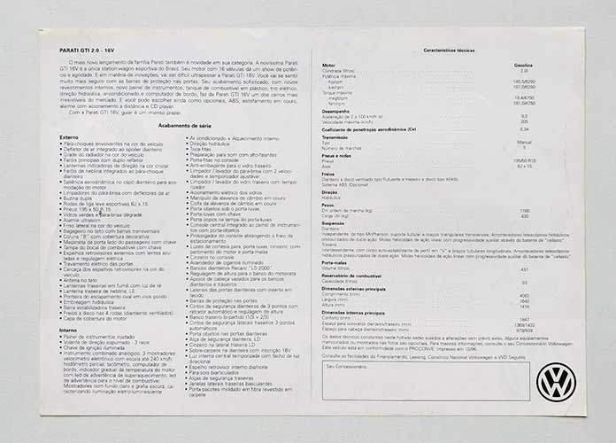 Os raros catálogos originais da Parati “bola”, à venda na Auto Livraria, incluem a versão GTI 16V, a série limitada Atlanta e outras como CLi, GLi e GLS. Para comprar, envie mensagem abaixo ou pelo Whatsapp (12) 99779-2817 com o número dos itens que deseja.
