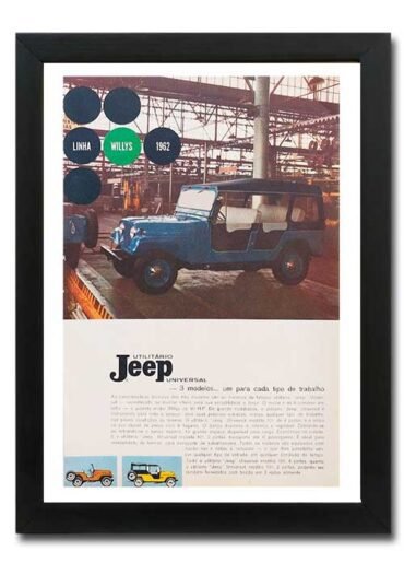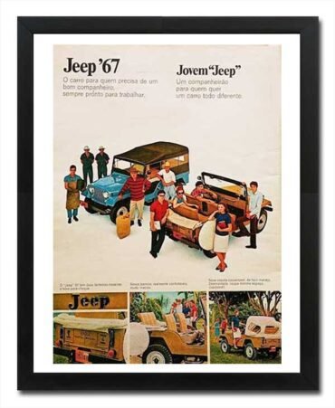 A Auto Livraria Best Cars oferece quadros decorativos com propagandas e matérias originais do Jeep, sem reproduções, publicadas em revistas da época. São ideais para decorar seu escritório ou garagem e para presentear quem também tem paixão pelos carros do passado.