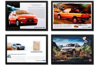 Quadros com propagandas e matérias da linha, incluindo versões 16V, Turbo e Stile - a partir de R$ 69...