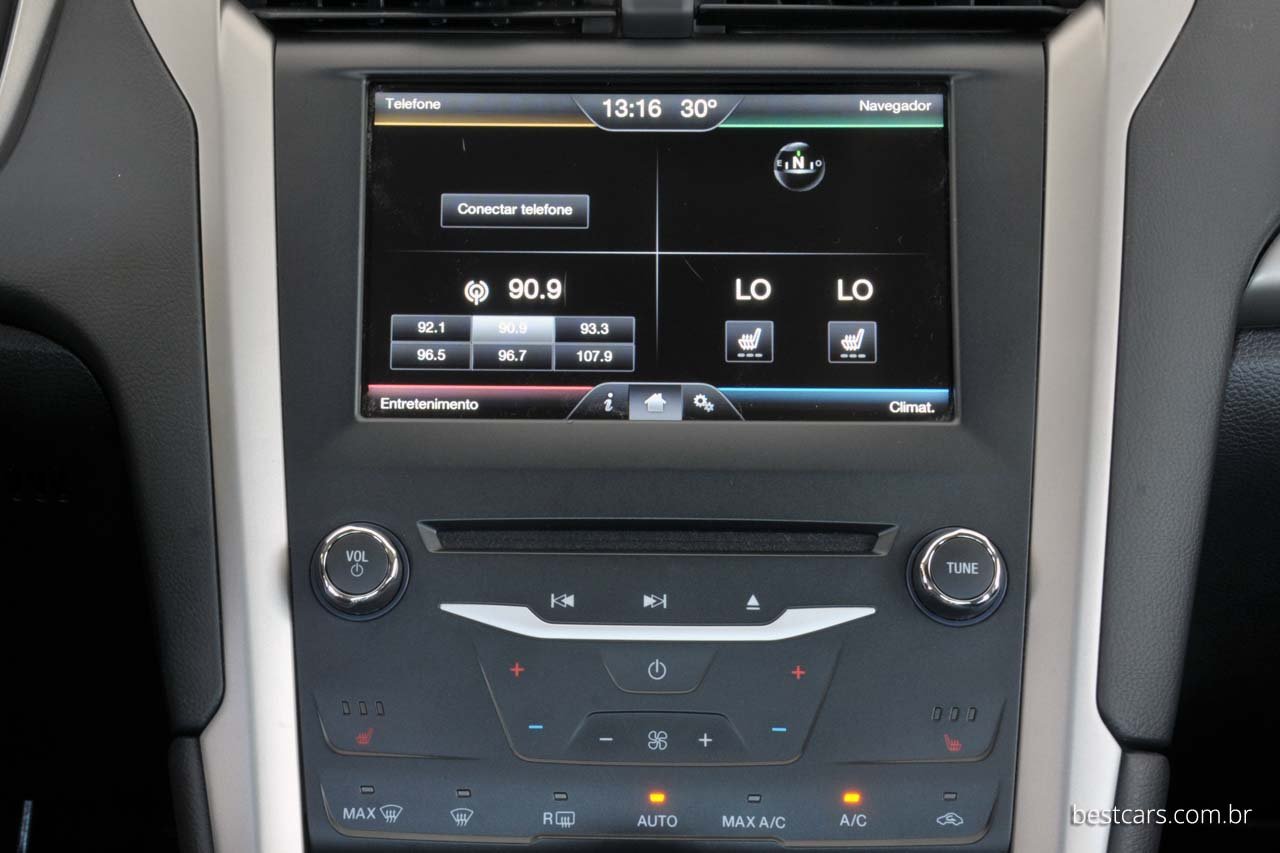 Com maiores dimensões, caso dos 12 cm adicionais entre os eixos, o novo Fusion oferece bastante conforto, seja nos bancos dianteiros (com ajustes elétricos, que incluem apoio lombar, altura e memórias no caso do motorista) ou no traseiro, que acomoda adultos com espaço de sobra e sem dificuldade de acesso, apesar do perfil do teto. Os retrovisores trazem um miniespelho convexo, que ajuda a eliminar pontos cegos, embora em nossa opinião uma lente biconvexa de cada lado resolvesse melhor o assunto (contudo, é proibida do lado esquerdo nos EUA).