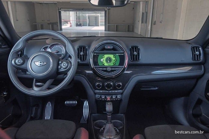 O pacote de alto desempenho, que estreou em janeiro no exterior, começa a ser vendido aqui ainda este ano ao preço sugerido de R$ 213.950. O motor turbo de 2,0 litros foi ajustado para 231 cv e torque de 35,7 m.kgf, aumentos de 39 cv e 7,1 m.kgf sobre a unidade de mesma cilindrada do Cooper S. A fábrica inglesa anuncia 0-100 km/h em 6,5 segundos, ajudada pelo assistente de largada, e máxima de 234 km/h com caixa automática de oito marchas.