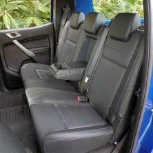 As cabines são amplas na frente e atrás, com ligeira vantagem no banco traseiro em espaço para pernas na S10 (menor na Frontier) e em largura nela e na Ranger. Todas são muito boas em altura, mas impõem encosto traseiro mais vertical do que se gostaria, um mal comum em picapes, e deixam desconfortável o passageiro central. Na Chevrolet e na Nissan as coxas têm pouco apoio pelo assento mais perto do assoalho.