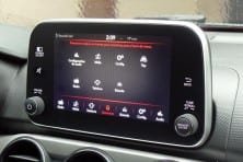 O interior mostra acabamento correto e destaca a tela sensível ao toque de 7 pol do sistema de áudio, fácil de operar e compatível com Android Auto e Apple Car Play