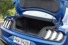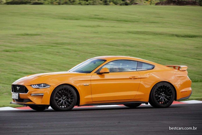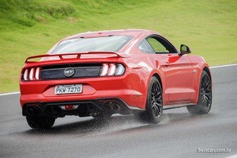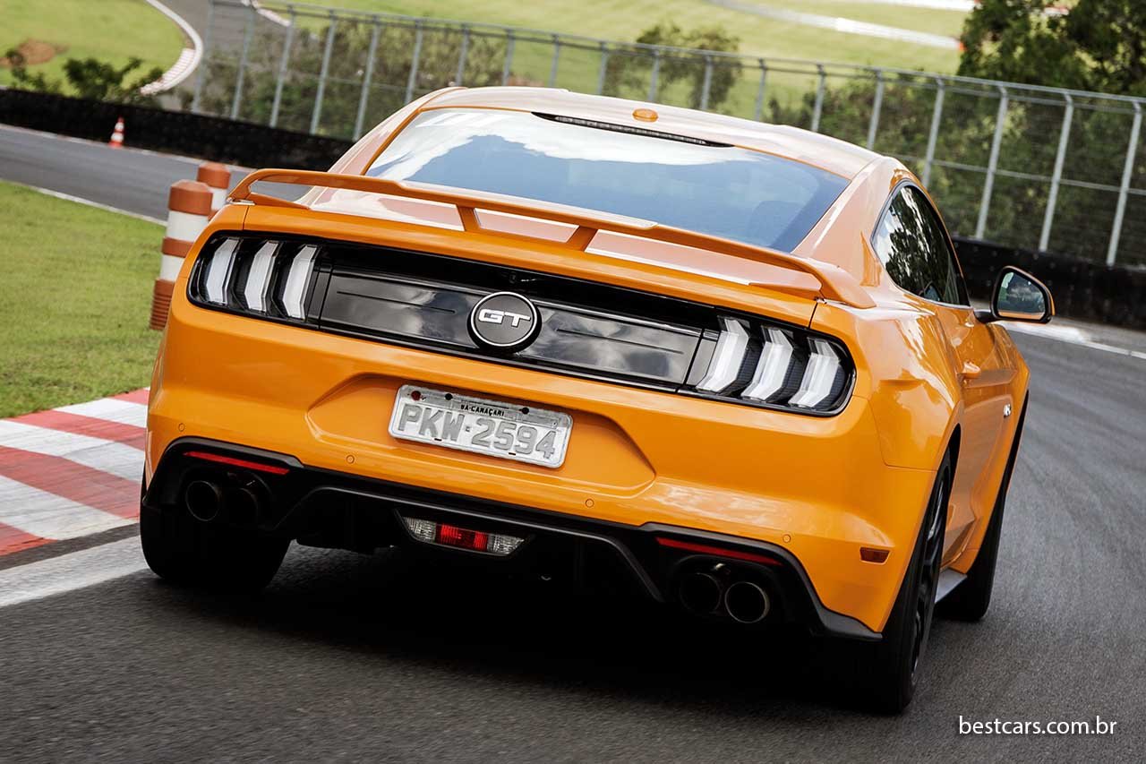 Rodas negras de 19 polegadas com tala mais larga atrás que na frente, faróis de leds, aerofólio traseiro e quatro saídas de escapamento compõem o visual esportivo e “musculoso”. O coeficiente aerodinâmico (Cx) de 0,354 é bom para um esportivo. Curioso é haver uma gama de 11 cores, bem mais variada que a dos Fords fabricados aqui em grande volume.