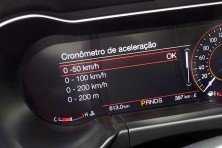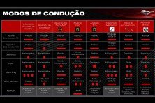 Claro que os modos não se limitam a reorganizar o quadro. A seleção entre os seis programas altera também resposta do acelerador (três níveis), atuação dos freios antitravamento ABS (dois) e dos controles eletrônicos de estabilidade (três) e de tração (três), ruído de escapamento (quatro), ponto das mudanças de marcha (quatro), assistência de direção (três) e carga dos amortecedores (quatro níveis). Existe ainda o My Mode (meu modo), programa com as escolhas individuais que só não afeta o controle de estabilidade (confira as opções na imagem na próxima página). Um sugestivo botão no volante com o cavalo correndo facilita a seleção.