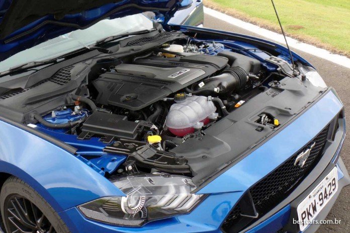 A Ford do Brasil participou tanto do desenvolvimento do projeto (sistemas de admissão de ar, arrefecimento, combustível e coxins do motor) quanto das validações e modificações para nosso mercado (recalibração para o combustível, testes de durabilidade e ruídos). Na linha 2018 houve aumentos de potência e torque e, segundo a fábrica local, a adaptação a nossa gasolina alcoolizada trouxe mais algum ganho. O GT ficou com 466 cv a 7.000 rpm (com limite de 7.500 rpm) e 56,7 m.kgf a 4.600 rpm, com 82% desse torque a 2.000 rpm, valores atingidos mesmo com gasolina comum.