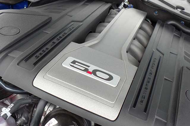 O motor V8 de exatos 5.038 cm³, de codinome Coyote, usa soluções modernas como variação do tempo de abertura das válvulas de admissão e escapamento, dois sensores de detonação em cada bancada — importantes pela alta taxa de compressão, 12:1 — e pulverização térmica a plasma para obter um revestimento mais fino dos cilindros no bloco de alumínio. Como em alguns motores do grupo Volkswagen, são usadas tanto a tradicional injeção indireta no duto, para rotações e cargas mais baixas, quanto a injeção direta, mais eficiente com rotações e cargas elevadas.