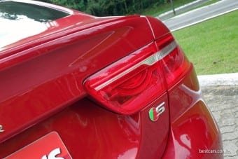 Nos interiores a maior diferença está no padrão de acabamento esportivo do XE avaliado, com revestimento em couro (laterais) e camurça sintética (centro) em preto e vermelho, bem mais chamativo que o preto do XF. Embora com desenhos distintos, os painéis seguem o mesmo conceito de contorno superior que parece interligar as portas, chamado de Arco Riva pela marca e inspirado em barcos da década de 1960.