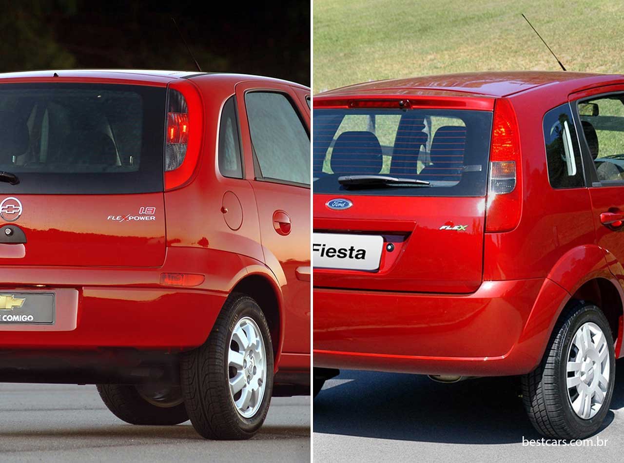 Eles chegaram ao Brasil quase juntos e com a mesma solução: em 2002, o Chevrolet Corsa (à esquerda) e o Ford Fiesta eram nossos primeiros carros com lanternas traseiras nas colunas. Mas não foram pioneiros na ideia: 10 anos antes, já era assim a perua Volvo 850.
