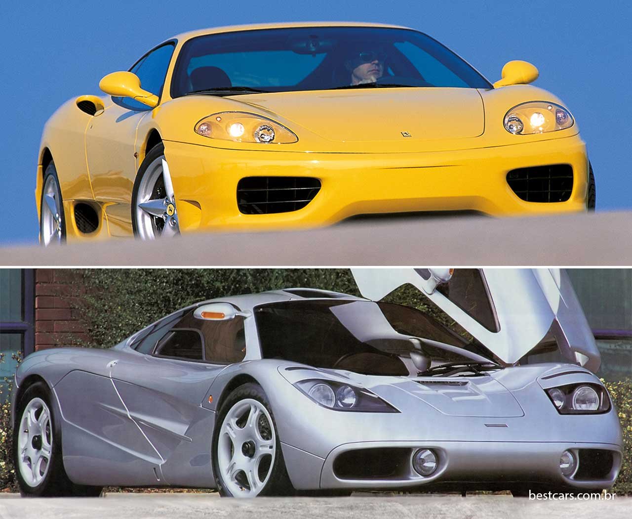 Quando a Ferrari lançou o 360 Modena (em cima), em 1999, chamou atenção a frente com grandes tomadas de ar e a parte central mais alta. Novidade? Não. O inglês McLaren F1 tinha a mesma solução seis anos antes.