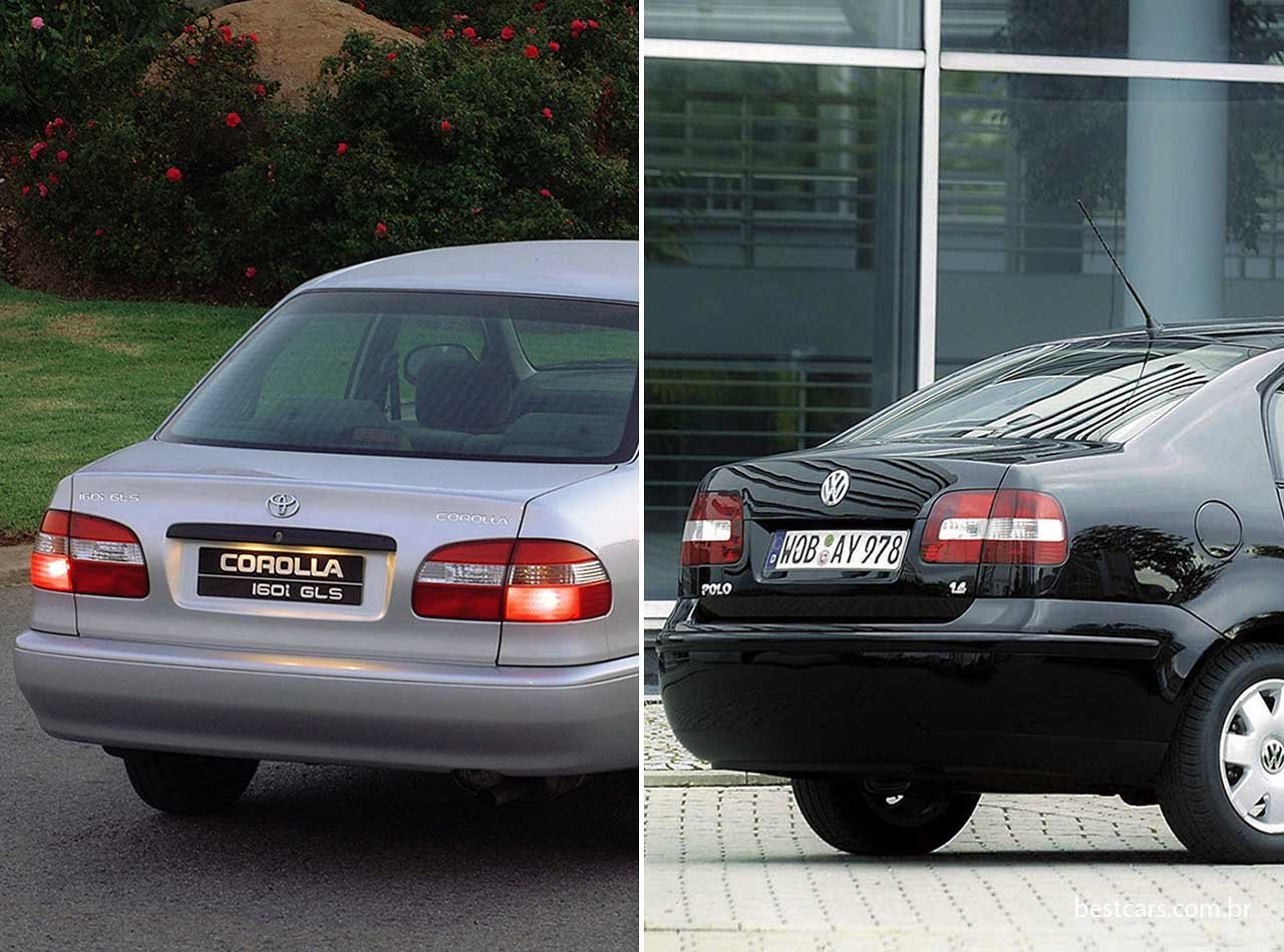 A Volkswagen precisava desenhar o Polo sedã de 2002, mas não queria uma miniatura do Bora ou do Passat. Pelo jeito, a inspiração veio do Oriente: as lanternas traseiras pareciam muito as do Toyota Corolla 1999-2002 (à esquerda) que havia saído de linha.