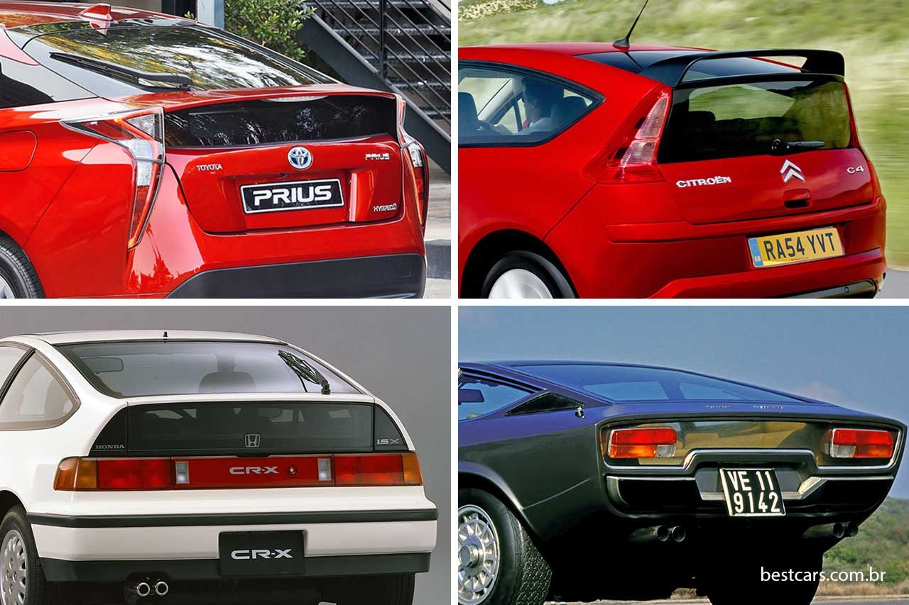 Quando vê a traseira do Toyota Prius, você se lembra do Citroën C4 de três portas, de 2004? A ideia de usar uma parte vertical de vidro é mesmo parecida, mas vem de longe. Antes do Honda CR-X de 1988, a solução foi usada pelo Maserati Khamsin de 1974.