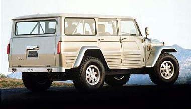 modo de dizer, já que o conforto era mínimo -- seis pessoas em dois assentos inteiriços, enquanto dois bancos traseiros laterais aumentavam a capacidade para sete a nove pessoas. O motor Toyota 2F a gasolina, de seis cilindros e 4,0 litros, o levava a pouco mais de 100 km/h. |