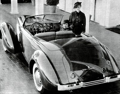 Neste protótipo de um Duesenberg menor e mais barato já aparecem as linhas básicas do Cord. embora os faróis ainda fossem convencionais |