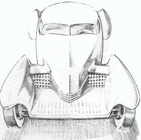 | Cansado de sujar o motor de seu Ford 1929, Gordon Buherig desenvolveu um carro sem grade no concurso interno de desenho da GM. Acabou levando-o para a Duesenberg, onde inspirou o Cord 810/812 | ![]() |