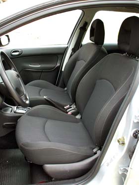 Na 206 SW os bancos dianteiros têm apoios bem definidos, mas o espaço é menor tanto à frente quanto atrás; também não se destaca em acabamento |