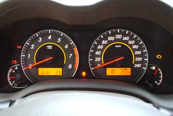 frente, com mostrador gráfico no painel, e o Corolla nas extremidades