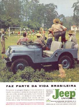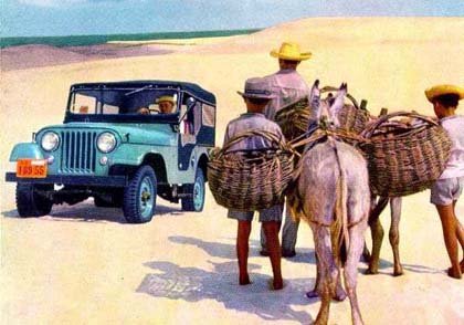 | Um pioneiro: o Jeep Universal, versão nacional do CJ-5, enfrentava as condições difíceis do interior do Brasil e servia até como veículo de auto-escola |