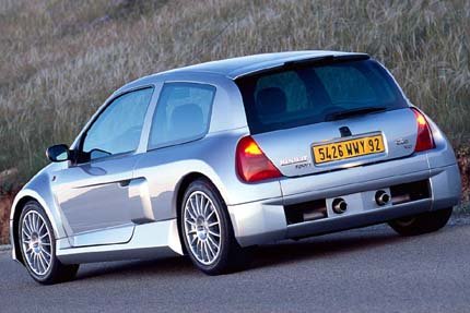 | O sucessor do lendário R5 Turbo: o Clio Sport V6, que colocava o motor 3,0 do Laguna no lugar do banco traseiro e despejava no asfalto 230 cv, para 0-100 em 6,4 segundos |