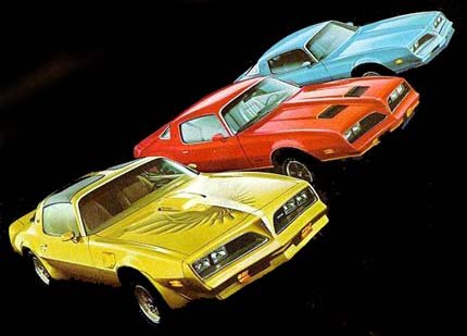 A frente era remodelada em 1978, com quatro faróis retangulares e um "bico" em forma de "V" no centro; o Trans Am mantinha o grande emblema no capô |