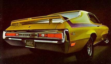 | O GSX, com faixas pretas, rodas largas e um destoante aerofólio traseiro, era a resposta da Buick ao Dodge Charger R/T e ao Ford Mustang Boss 302 |