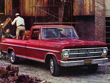 No ano seguinte, dois V8 maiores substituíam o 352: o 360, de 5,9 litros e 215 cv, e o 390, de 6,4 litros e 255 cv. Freios dianteiros a disco tornavam-se opcionais nos F-250/350. Em 1969 a Ford lançava o modelo Crew Cab, com cabine dupla, quatro portas e longa distância entre eixos, bem-vindo tanto no transporte familiar quanto no de serviços. A lista de opcionais dos picapes continuava em crescimento: direção assistida, ar-condicionado, vidros verdes, rádio AM, servo-freio. Continua |