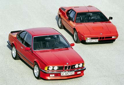 | O M635 CSi e o carro esporte que lhe cedeu o motor, o M1: o novo Série 6 chegava a 286 cv e acelerava de 0 a 100 em 6,4 segundos, com o 3,5-litros de duplo comando e 24 válvulas |