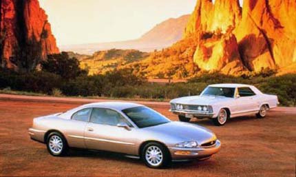 | Em 36 anos de produção, o cupê da Buick passou por momentos áureos e más fases, mas recuperou boa parte do brilho conquistado pelo modelo 1963 (ao fundo) |