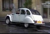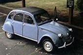 vários carros, incluindo um 2CV cinza. |