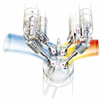 válvulas) consistia em árvores de comando com três ressaltos para cada
