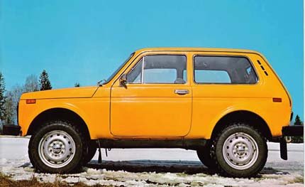 Em 1976 era apresentado o pequeno jipe russo: estrutura monobloco, linhas simples e retas, desenho da própria Lada e motor de 1,6 litro a gasolina |