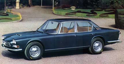 | Antes da segunda geração, a Maserati fez apenas dois exemplares do projeto AM 121, um sedã com desenho de Frua, chassi do esportivo Indy e motor de 4,9 litros |