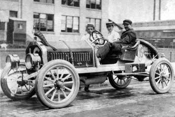Buick 1906 (no alto), durante sua atuação na marca, e com a esposa no