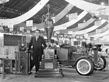 O troféu conquistado em um evento com o hot rod, o Black Beauty feito para o Besouro Verde e o Cosma Ray, elaborado a partir de um Corvette |