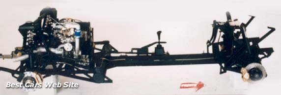 O chassi próprio do Hofstetter, do tipo espinha dorsal em aço, adotava soluções curiosas, típicas de um tempo de mercado fechado às importações. A suspensão dianteira vinha do Chevette, mas com nova geometria e amortecedores pressurizados mais firmes, e a traseira do Passat... mas era a dianteira do VW, tipo McPherson, instalada invertida. |
