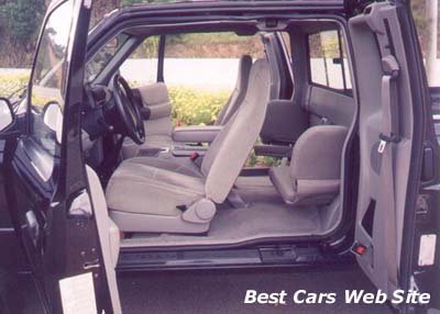 Ambas as portas têm interruptor de travamento central; se alguma estiver aberta, uma luz se acende no painel. Os vidros possuem temporizador do controle elétrico e, no console central, ficam uma tomada adicional de energia (além do acendedor de cigarros) e o comando de desativação da bolsa inflável do passageiro. A luz de freio elevada, no topo da cabine, também ilumina a caçamba -- dotada de proteção interna, mas sem ganchos para amarrar a carga. |