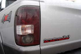 tem aspecto moderno e inclui computador de bordo; na tampa da caçamba, a