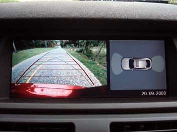 câmera traseira, que mostra o que há atrás do carro no painel do iDrive