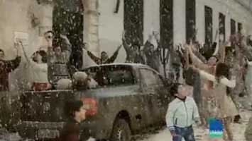 chuva de pipocas se abate sobre a cidadezinha uruguaia! Criativo.