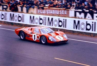 McLaren e Mark Donohue com o Mark IV. Seu motor era um V8 OHV de 6,9 litros e 500 cv, apto à velocidade máxima de 355 km/h. Cruzaram a linha de chegada quatro voltas à frente do ameaçador Ferrari 330 P4 de