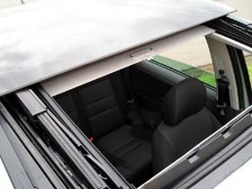 composto de uma seção móvel (corrediça e basculante) acima dos bancos dianteiros, com comando elétrico, e outra fixa sobre o traseiro |