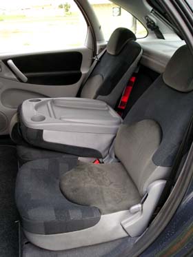 largura, a Picasso tem bancos traseiros separados de mesma largura e, como na Scénic, o central pode ser rebatido para servir de mesa |