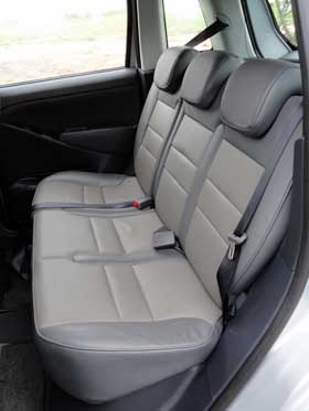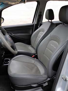 Na Idea o banco está desalinhado dos pedais e do volante, o que incomoda; como na oponente, falta cinto de três pontos para o quinto ocupante |