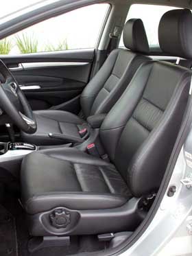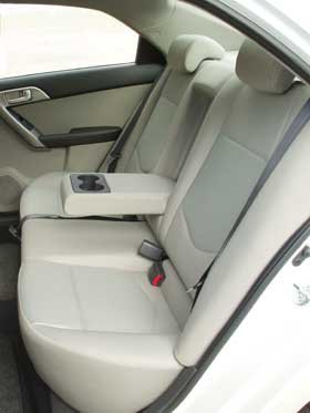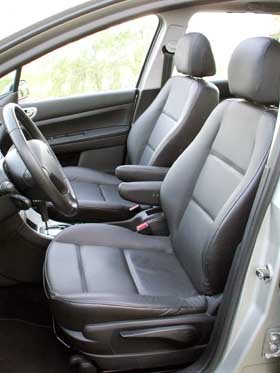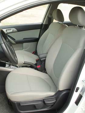 | Cerato: interior confortável, mas com acabamento muito simples e sem opção de couro; faltam cinto de três pontos e encosto de cabeça para o quinto ocupante |